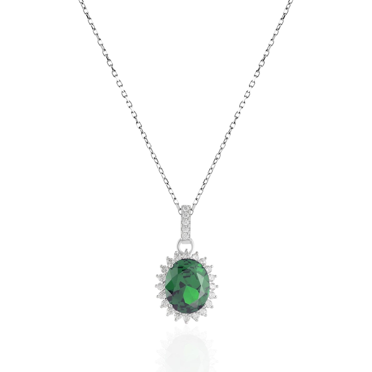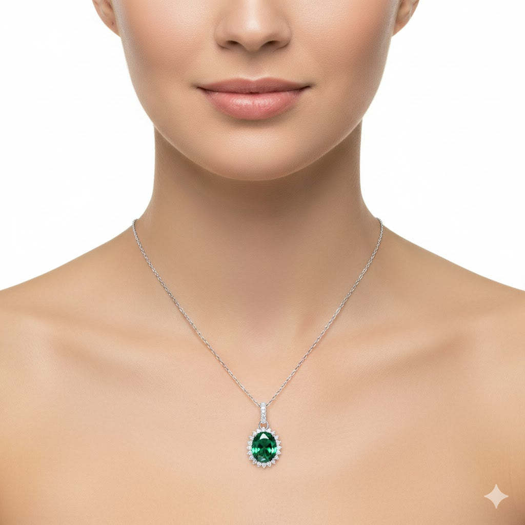 Enhance your elegance with this Sterling Silver Classic Cluster Emerald Necklace. Crafted from premium sterling silver, it features a stunning cluster of emerald-colored cubic zirconia stones, creating a timeless and sophisticated pendant design. Perfect for everyday wear or special occasions, this necklace is lightweight, durable, and hypoallergenic. Ideal as a gift for birthdays, anniversaries, or holidays, it adds a pop of green luxury to any outfit.