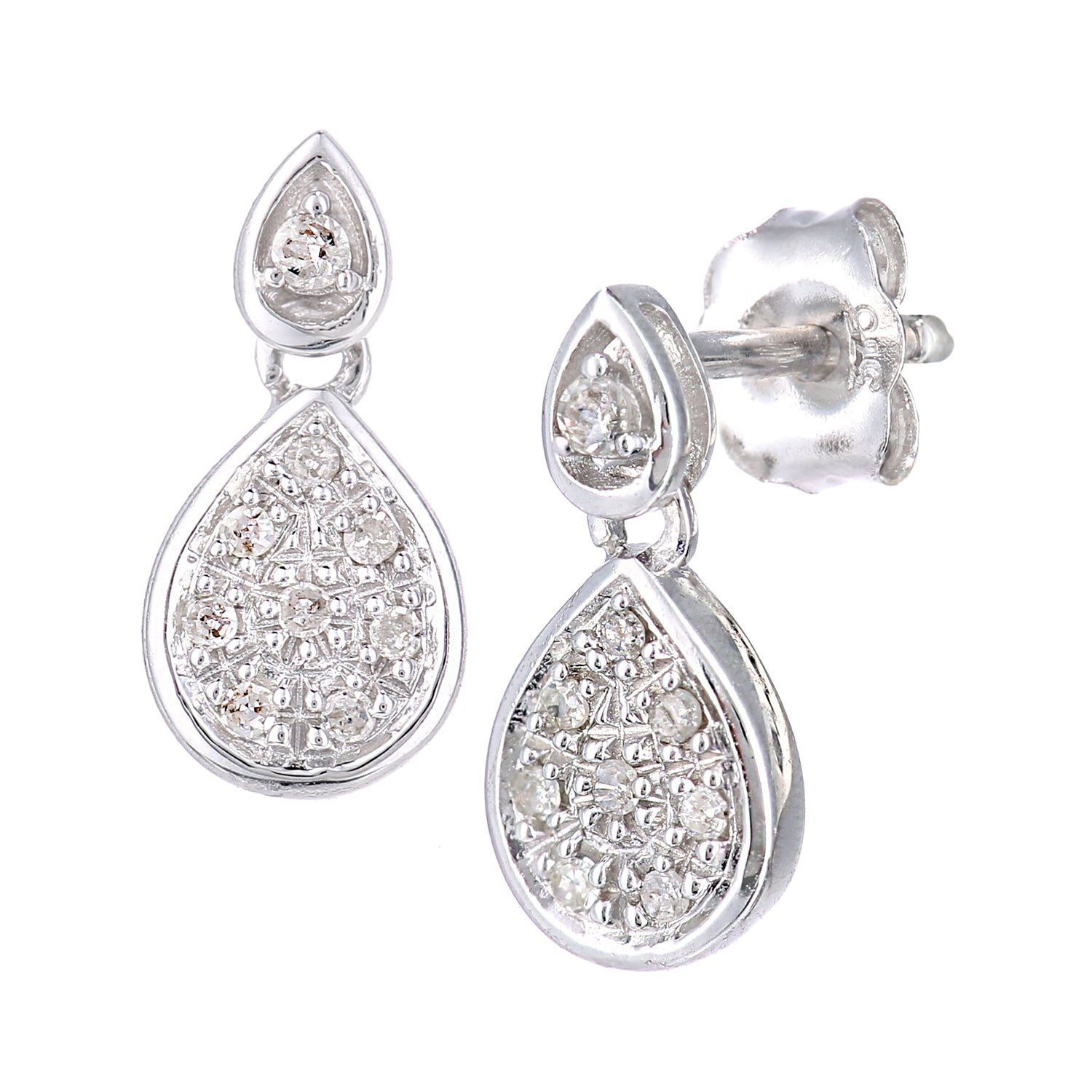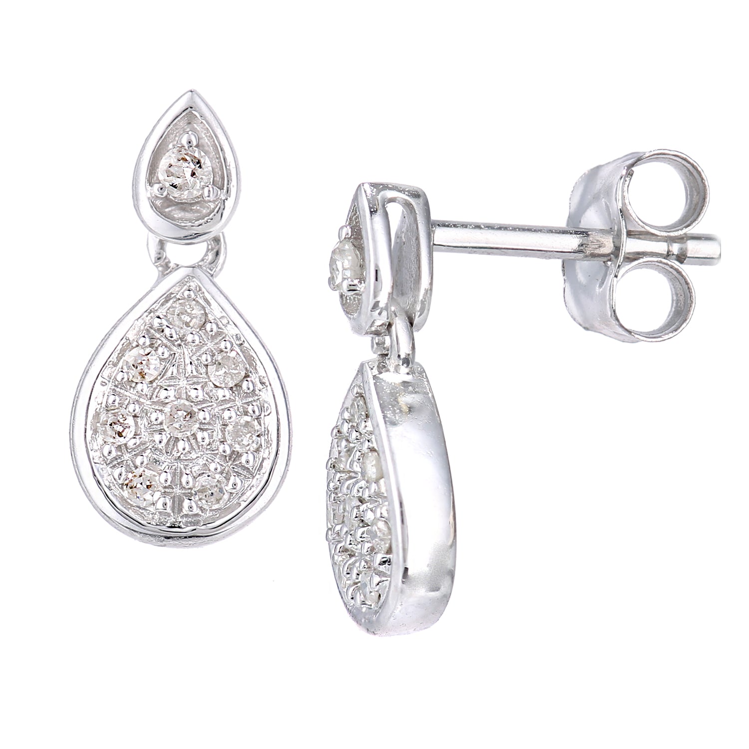 Pave Set Diamond Pear Shape Stud and Drop Earrings in 9ct White Gold