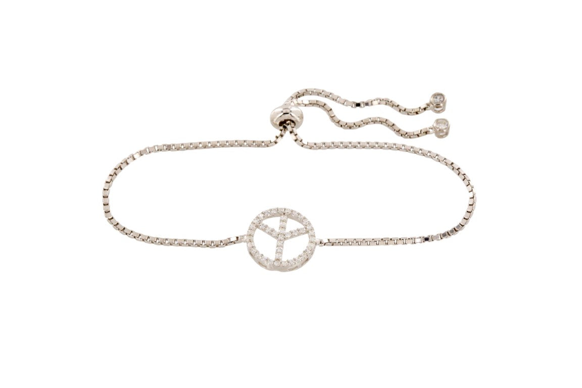 Peace Sign 925 Sterling Silver Toggle / Slider Bracelet studded with CZ