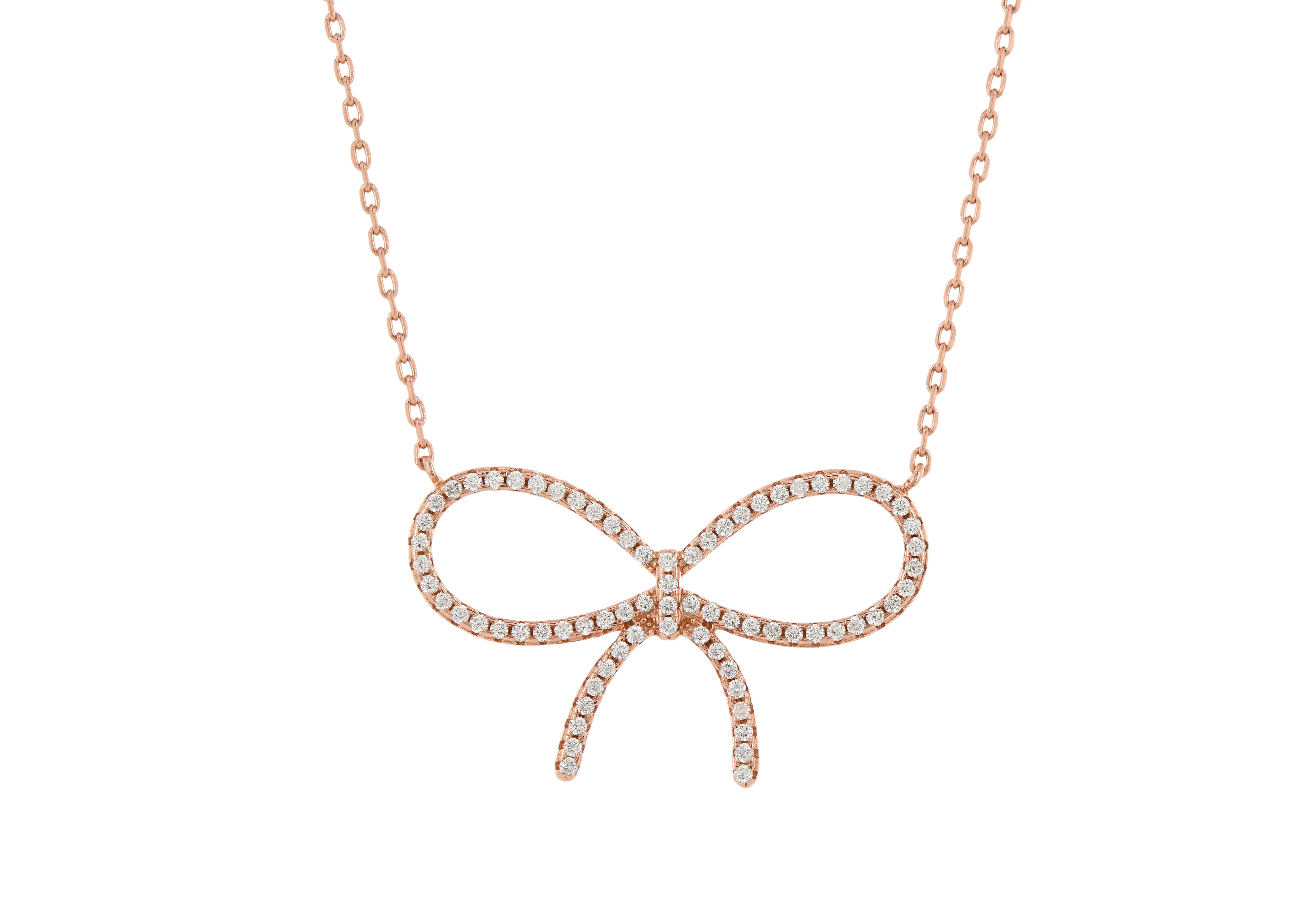Rose Gold Colour Knot Design 925 Sterling Silver Necklace with CZ