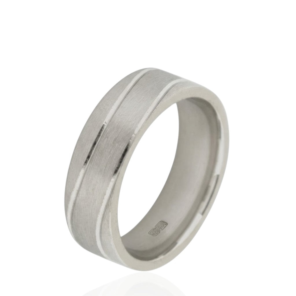 Discover timeless elegance with this 7mm matted finish wedding ring, designed with a sleek flat shape for a clean and contemporary look. This modern wedding band offers understated sophistication, making it perfect for weddings, engagements, anniversaries, or everyday wear.