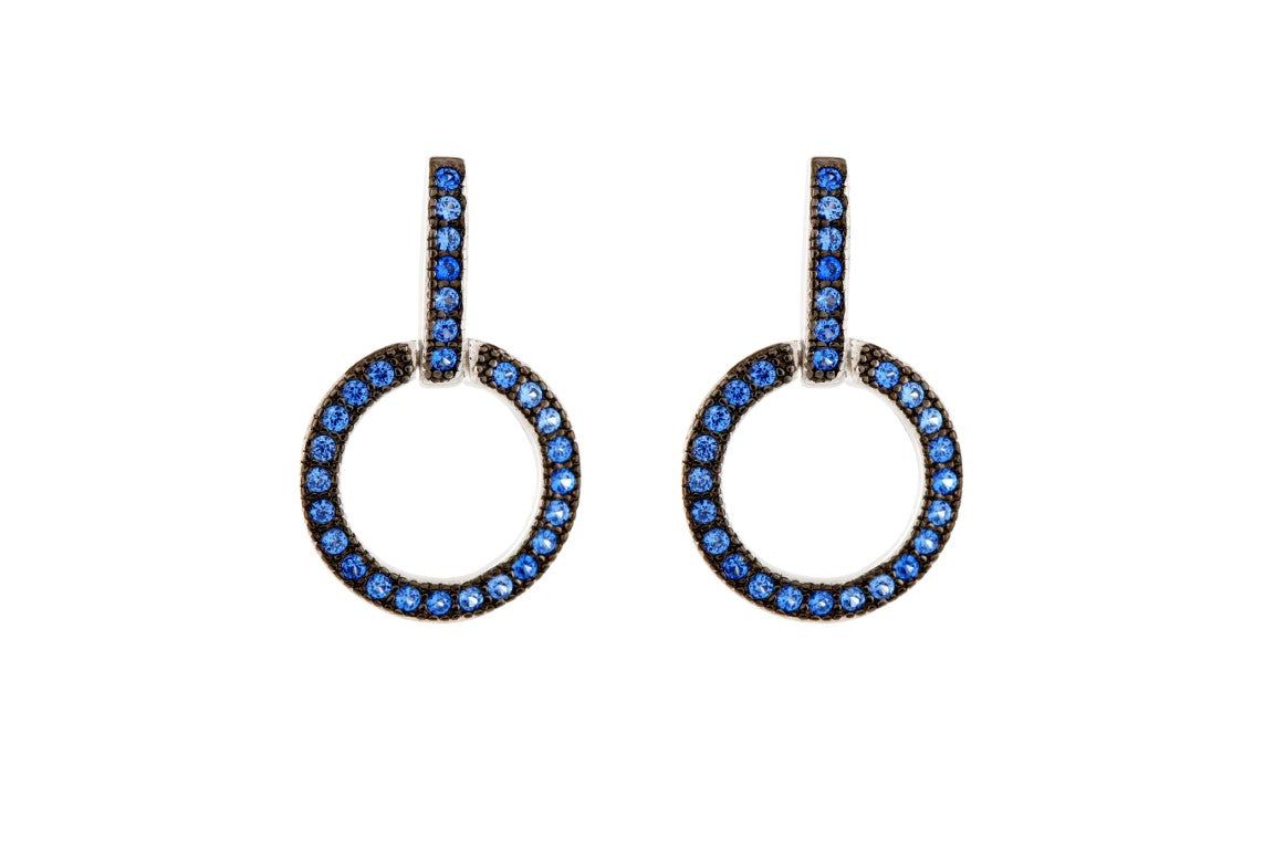 Stylish Design Circle Shape 925 Sterling Silver Earrings studded with Sapphire CZ