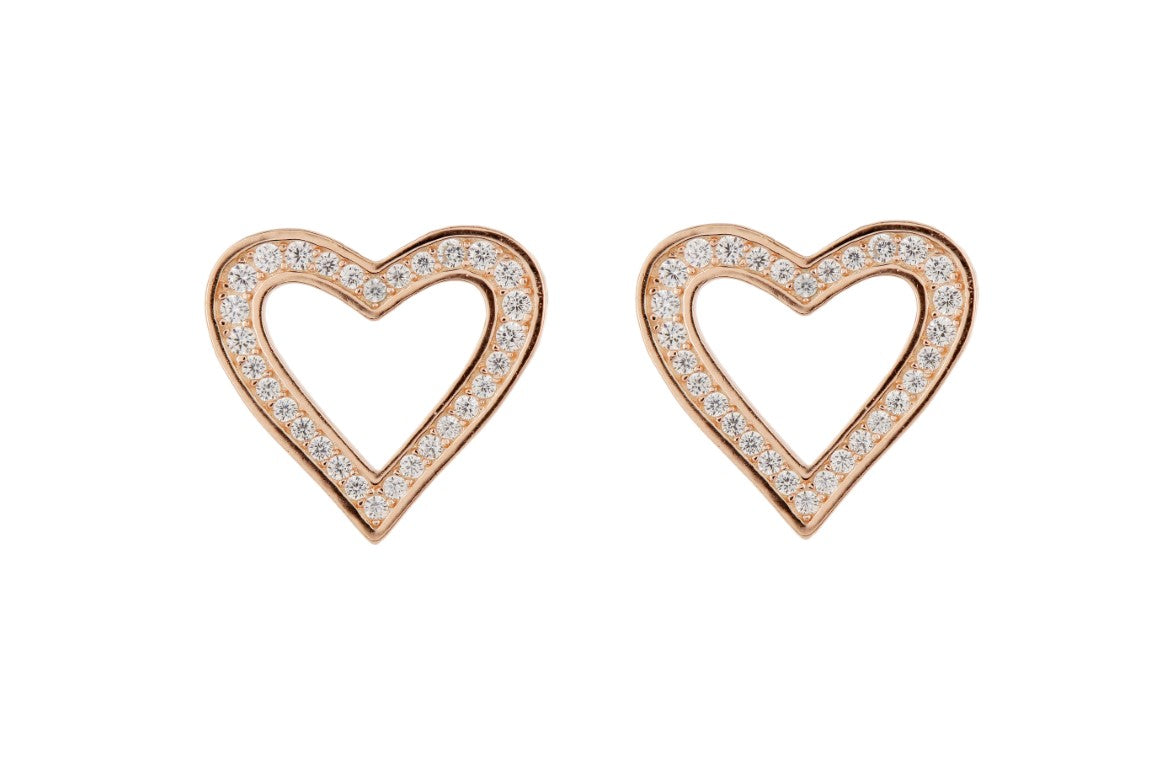 Stylish Design Heart Shape Rose Gold Colour 925 Sterling Silver Earrings studded with CZ