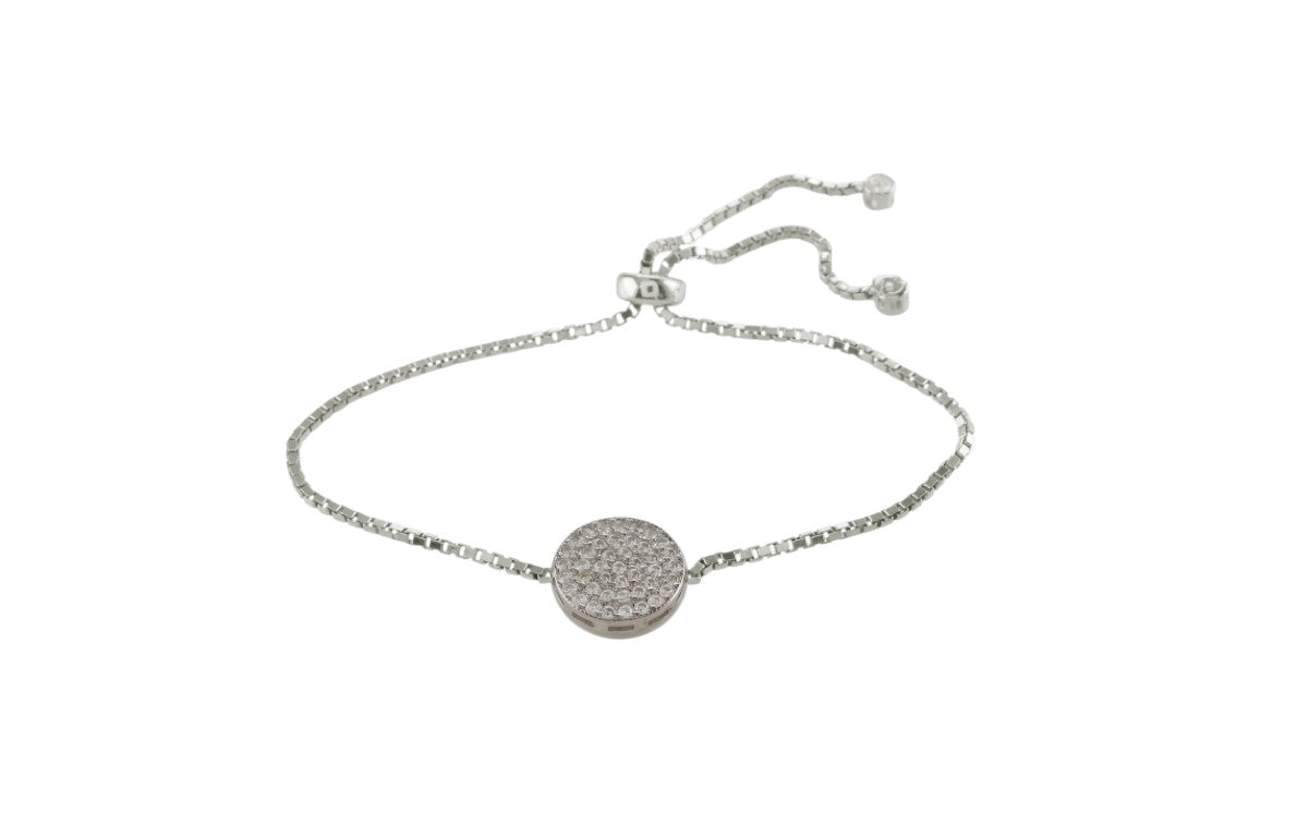 Stylish Design Round Shape 925 Sterling Silver Toggle / Slider Bracelet studded with CZ