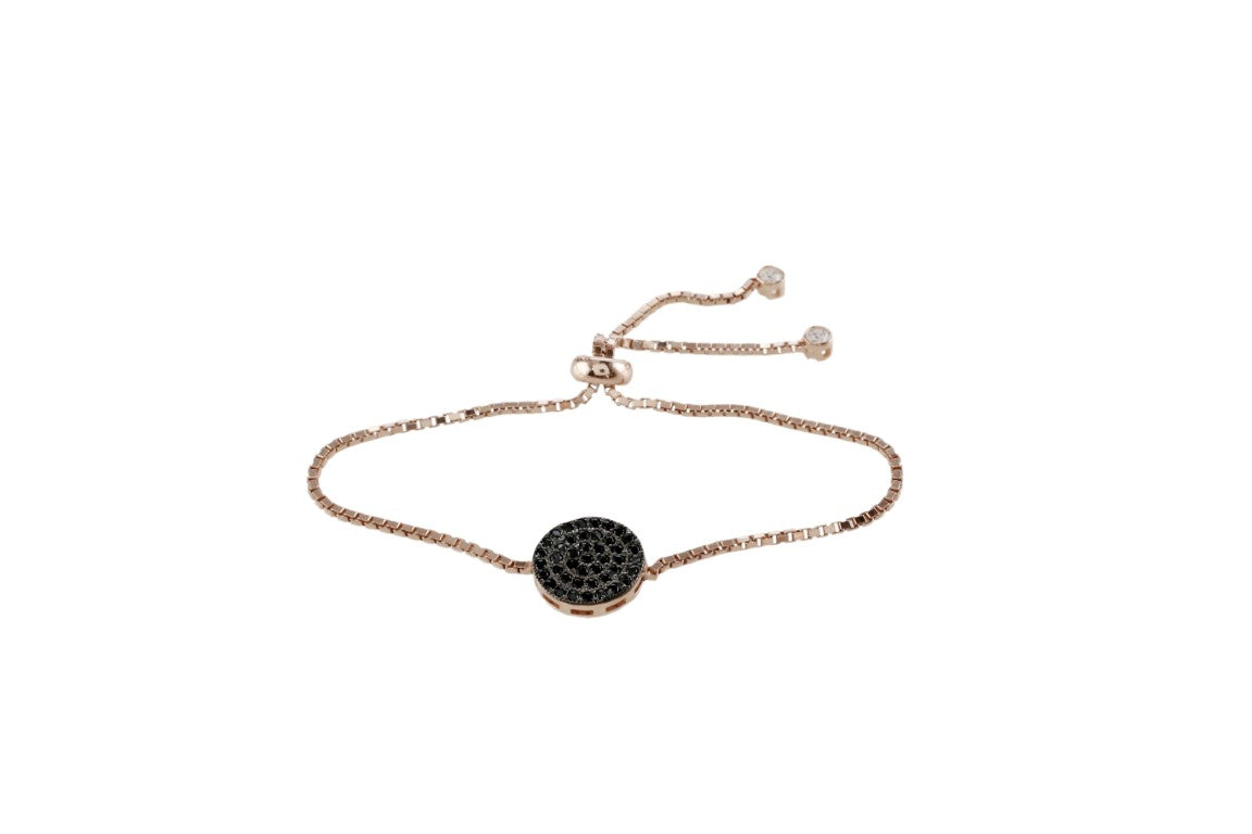 Stylish Design Round Shape Rose Gold Colour 925 Sterling Silver Toggle / Slider Bracelet studded with CZ
