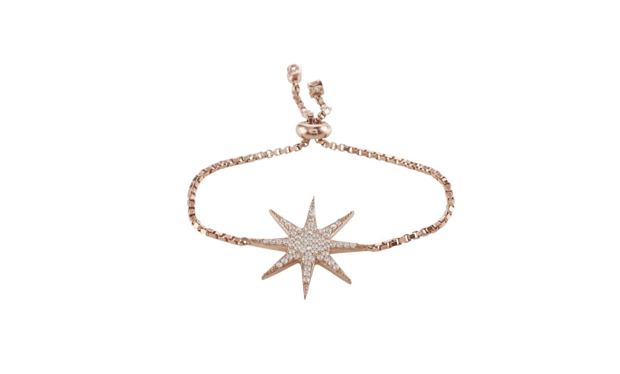 Stylish Design Shining Star Rose Gold Colour 925 Sterling Silver Toggle / Slider Bracelet studded with CZ