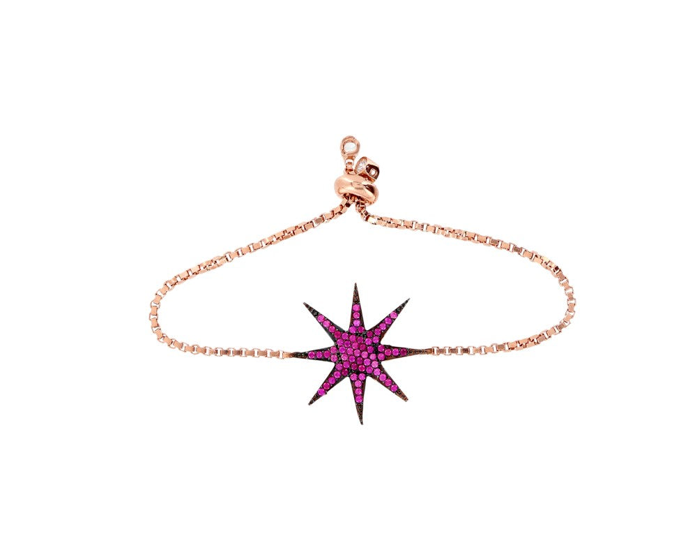 Stylish Design Shining Star Rose Gold Colour 925 Sterling Silver Toggle / Slider Bracelet studded with Ruby CZ