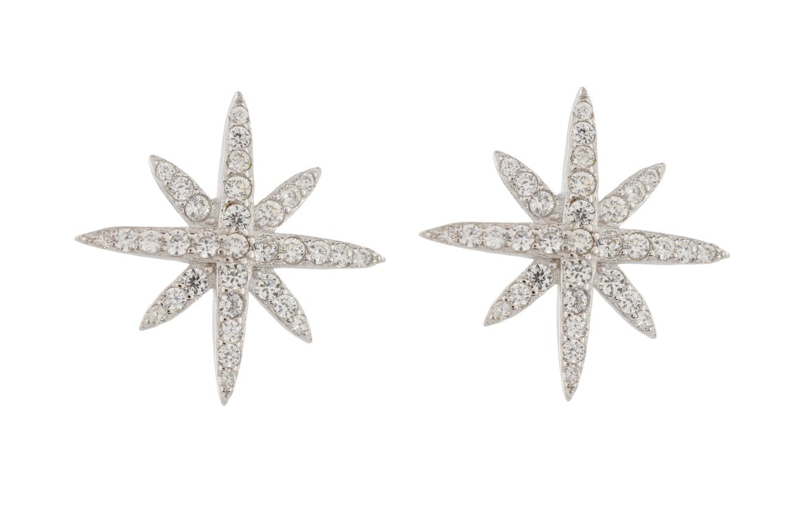 Stylish Design Star 925 Sterling Silver Earrings studded with CZ