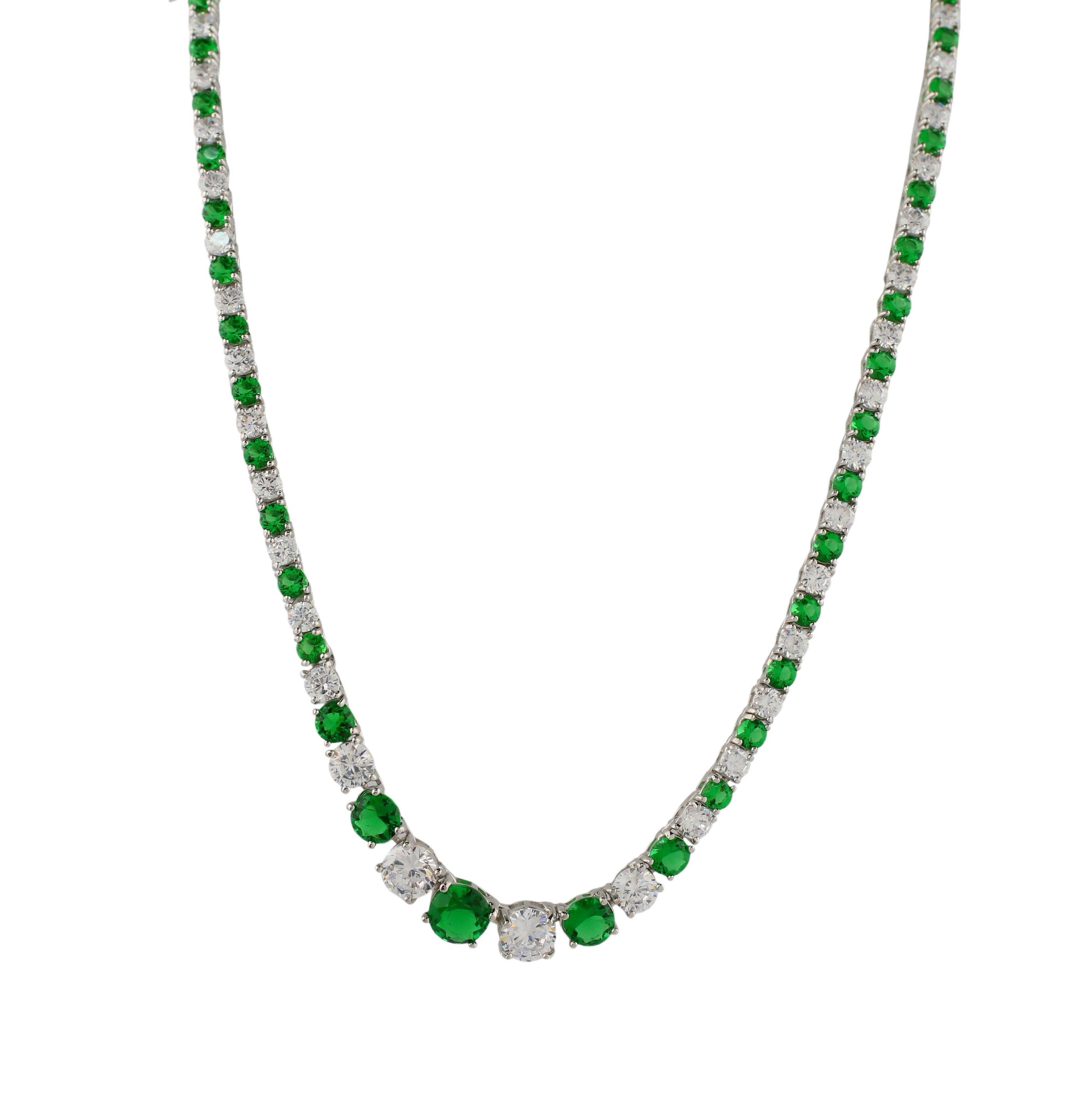 Tennis Style Necklace 925 Sterling Silver with Green and White CZ