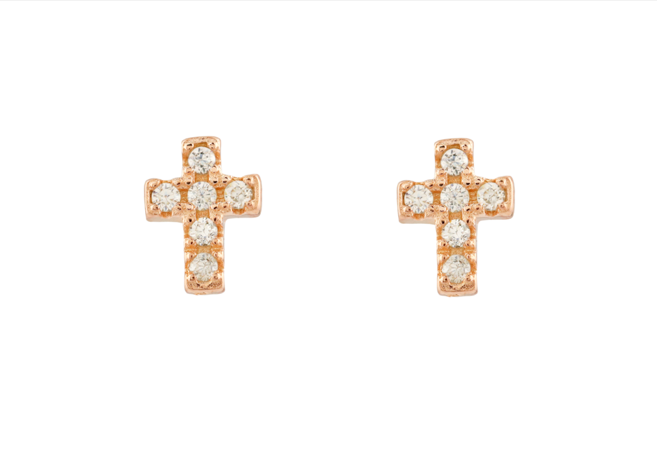 Tiny Cross Rose Gold Colour 925 Sterling Silver Earrings studded with CZ