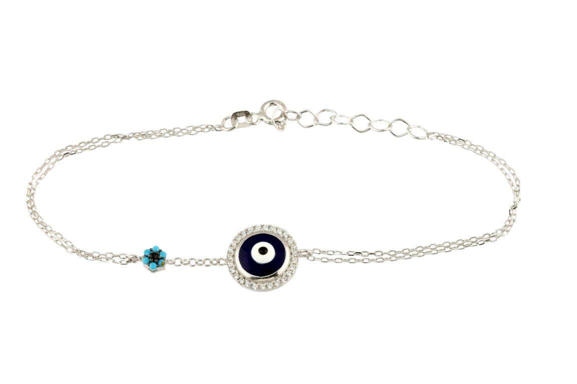 Traditional Design Evil Eye 925 Sterling Silver Adjustable Bracelet studded with CZ