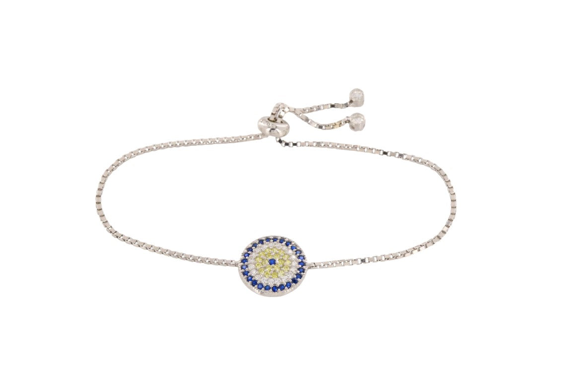 Traditional Design Evil Eye 925 Sterling Silver Toggle / Slider Bracelet studded with CZ