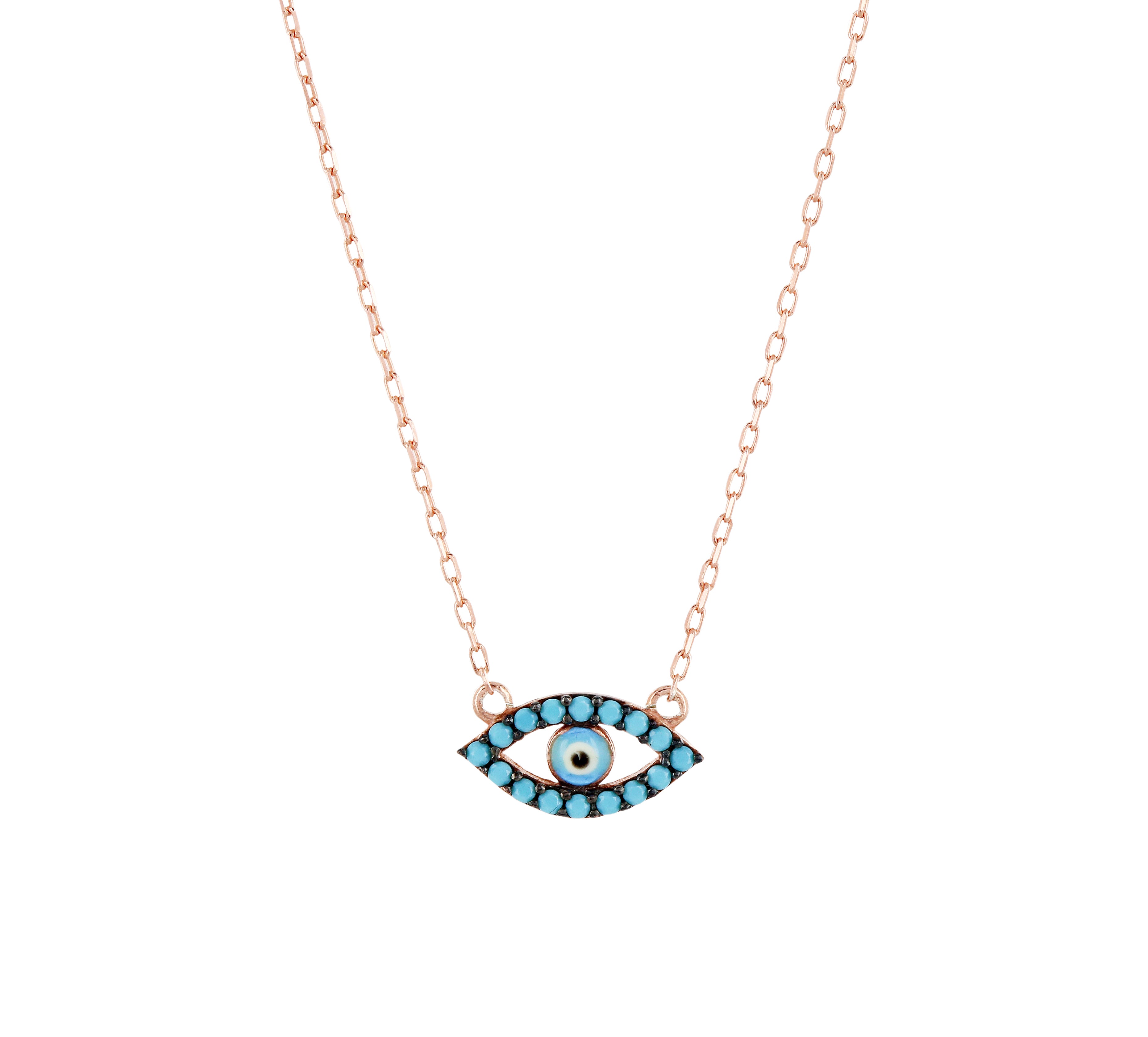 Traditional Design Evil Eye Rose Gold Colour 925 Sterling Silver Necklace studded with Turquoise CZ