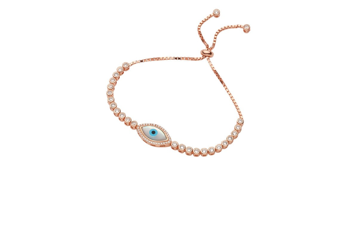 Traditional Design Evil Eye Rose Gold Colur 925 Sterling Silver Toggle / Slider Bracelet studded with CZ