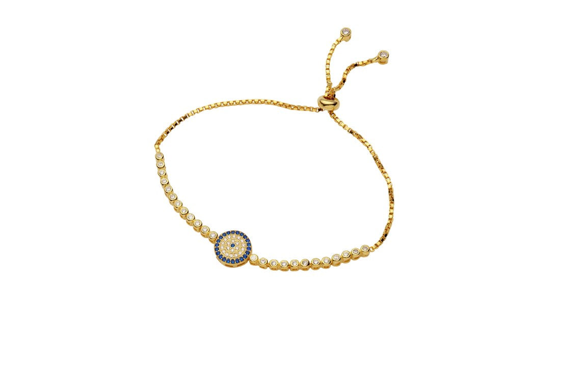 Traditional Design Evil Eye Yellow Gold Colour 925 Sterling Silver Toggle / Slider Bracelet studded with CZ