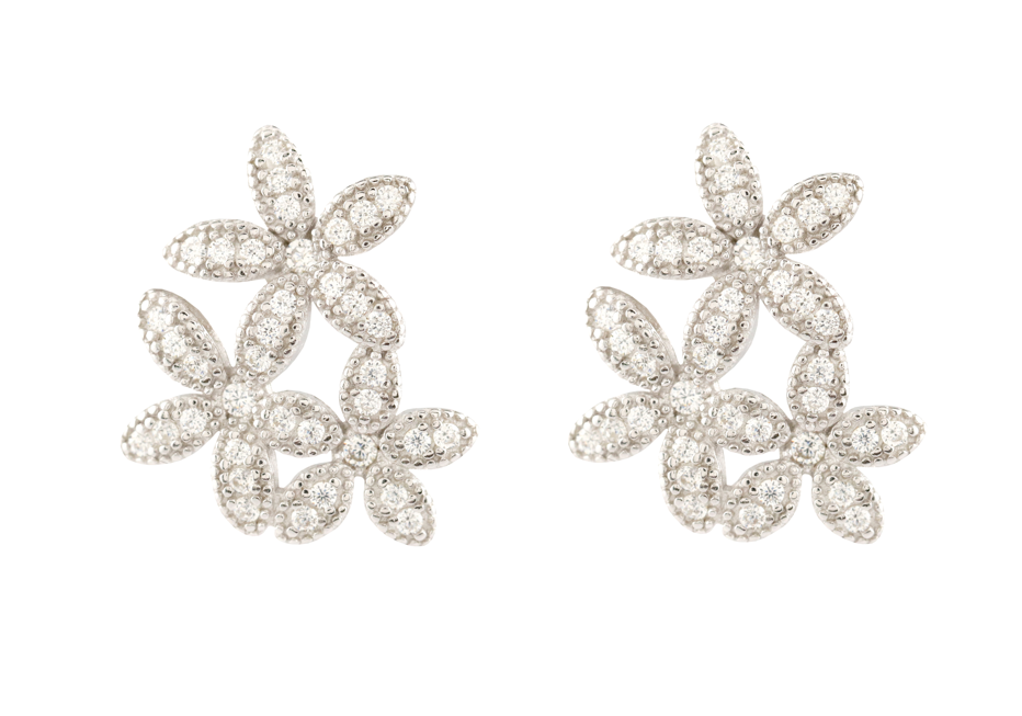 Triple Flower Design 925 Sterling Silver Earrings studded with CZ